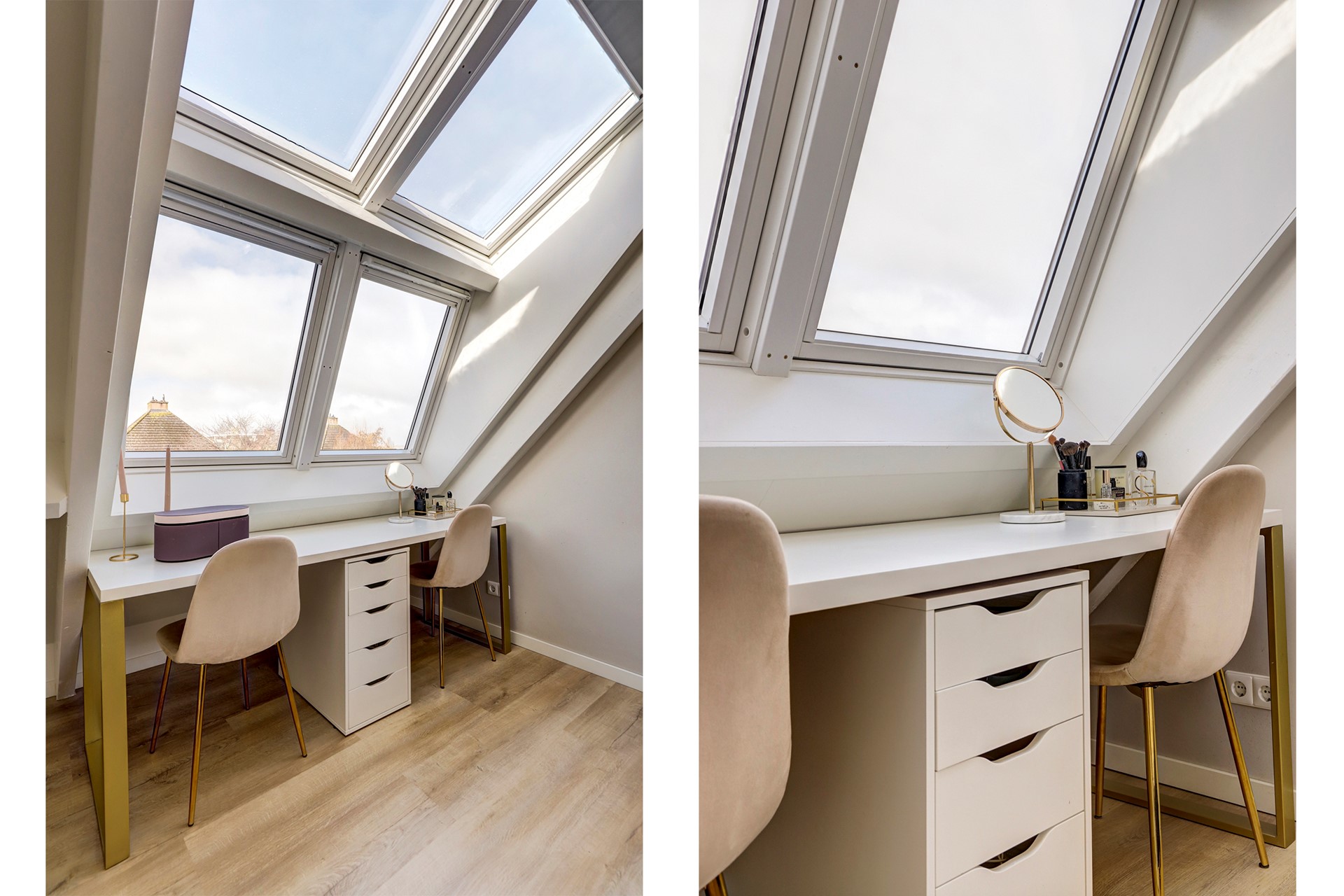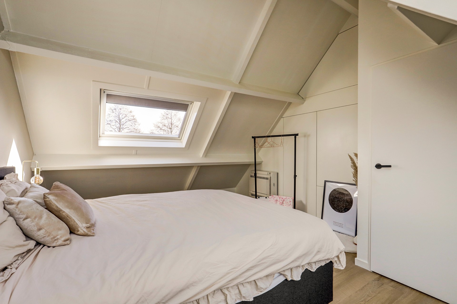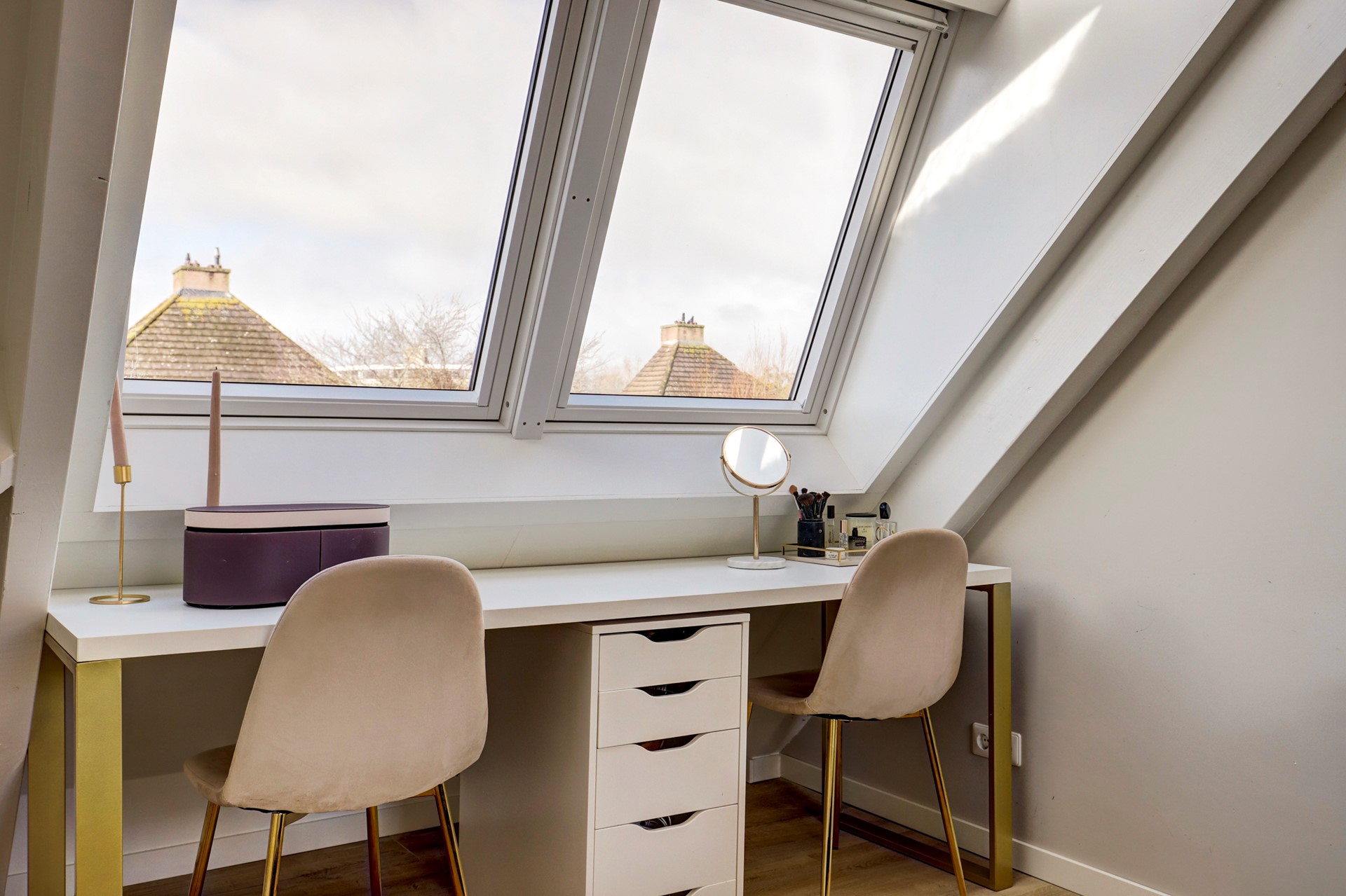 Hier vind je drie comfortabele slaapkamers en een moderne badkamer met toilet, dubbele wastafel en inloopdouche. De slaapkamers aan de achterzijde zijn voorzien van dakramen, waardoor de zon ’s ochtends zacht naar binnen glijdt, bijna alsof het huis je zachtjes wakker kust.