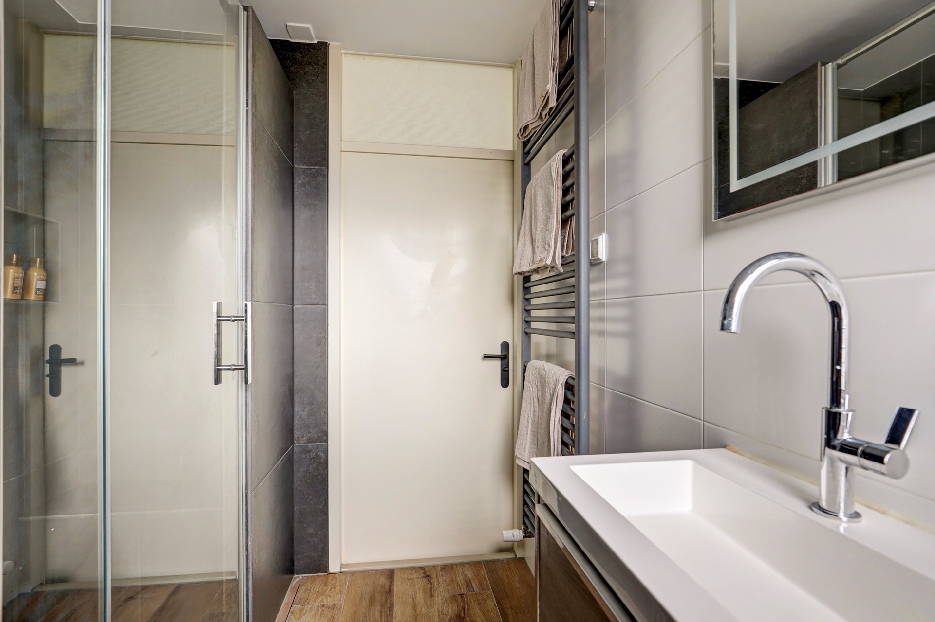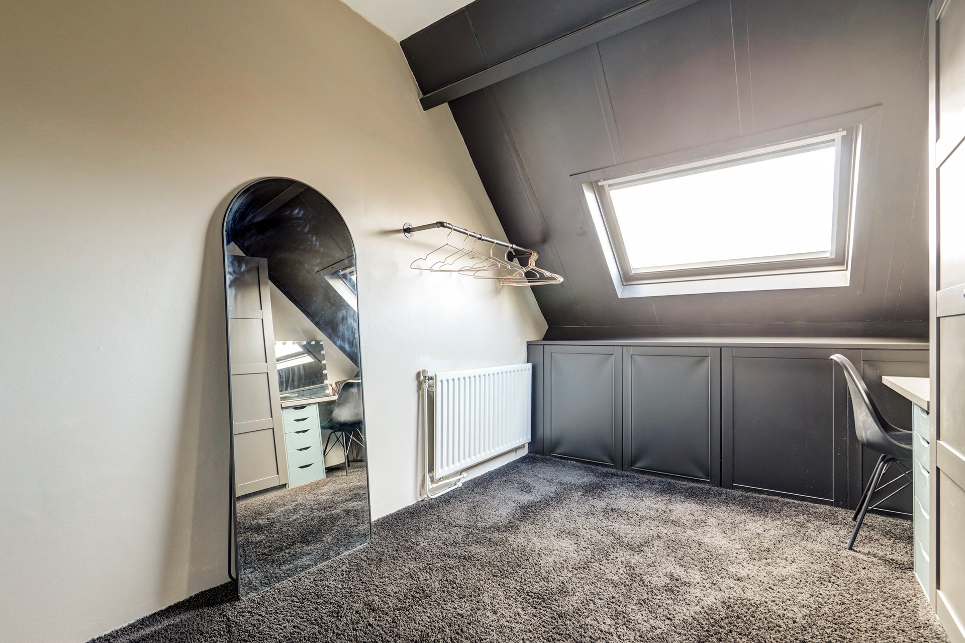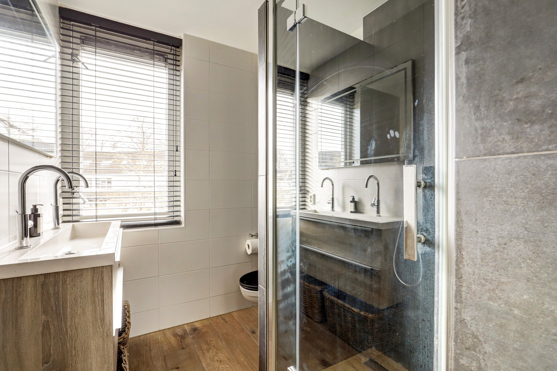 Hier vind je drie comfortabele slaapkamers en een moderne badkamer met toilet, dubbele wastafel en inloopdouche. De slaapkamers aan de achterzijde zijn voorzien van dakramen, waardoor de zon ’s ochtends zacht naar binnen glijdt, bijna alsof het huis je zachtjes wakker kust.
