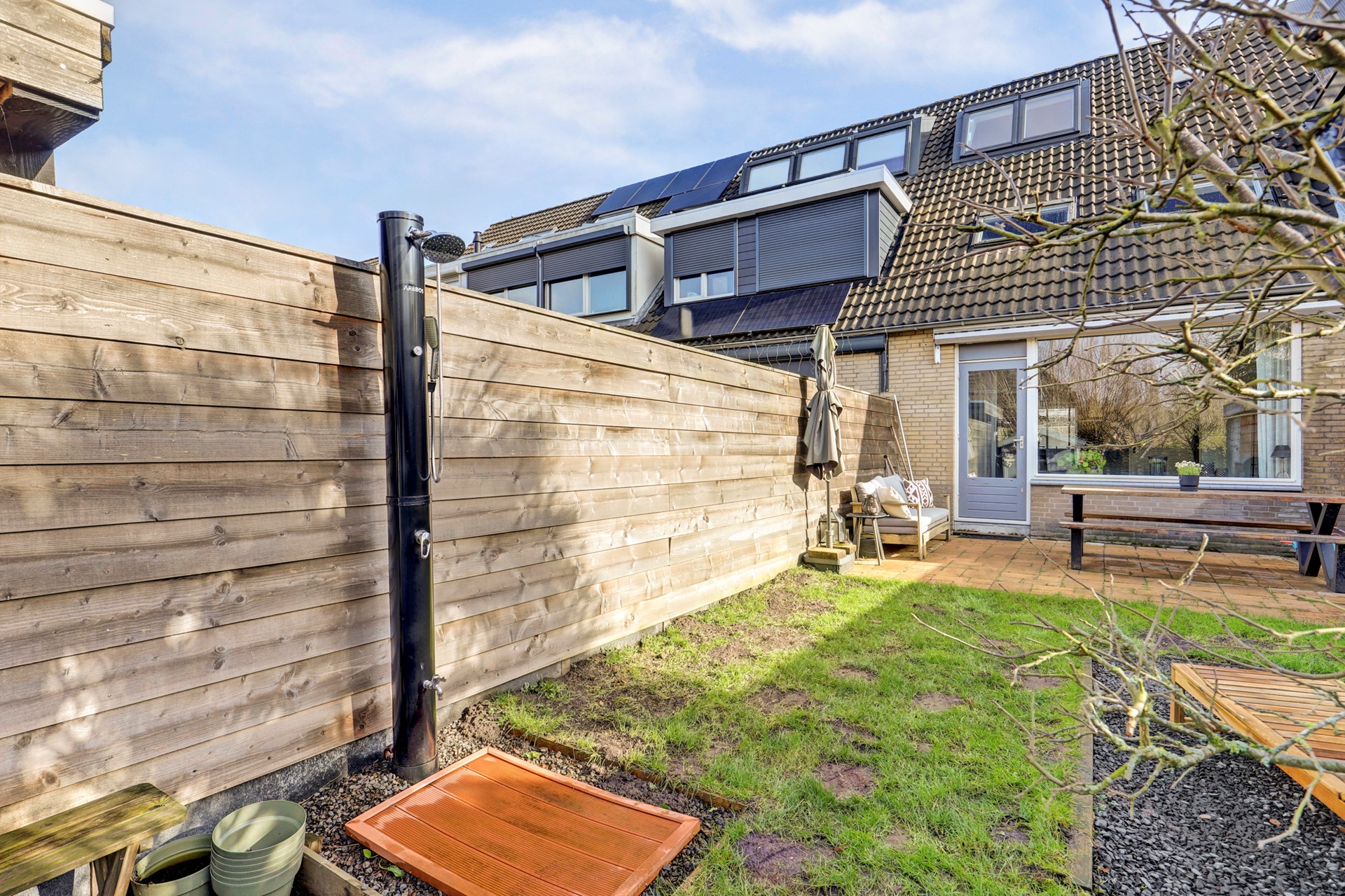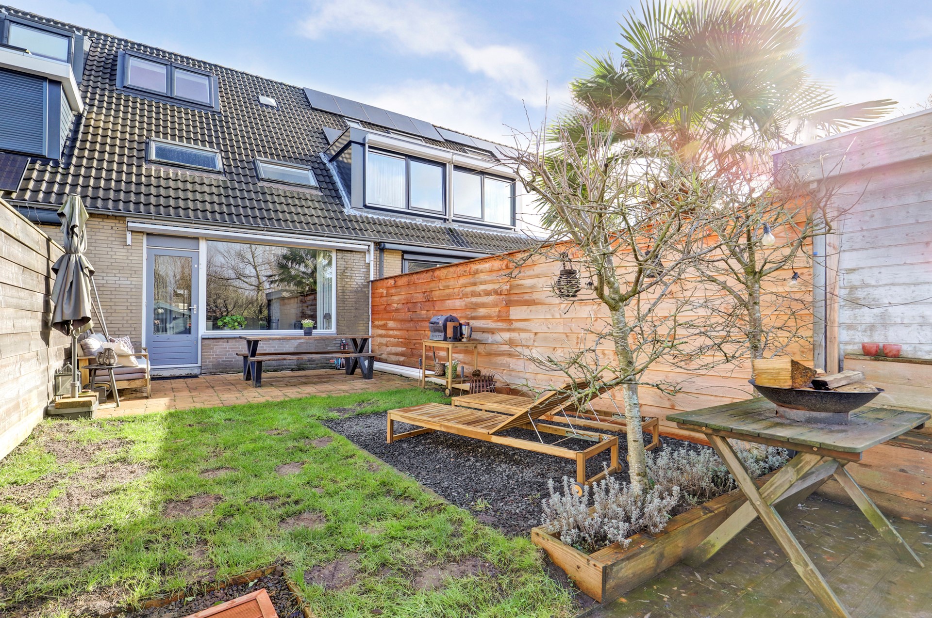 - Zonnige tuin: Westelijk gelegen achtertuin met middag- en avondzon,
