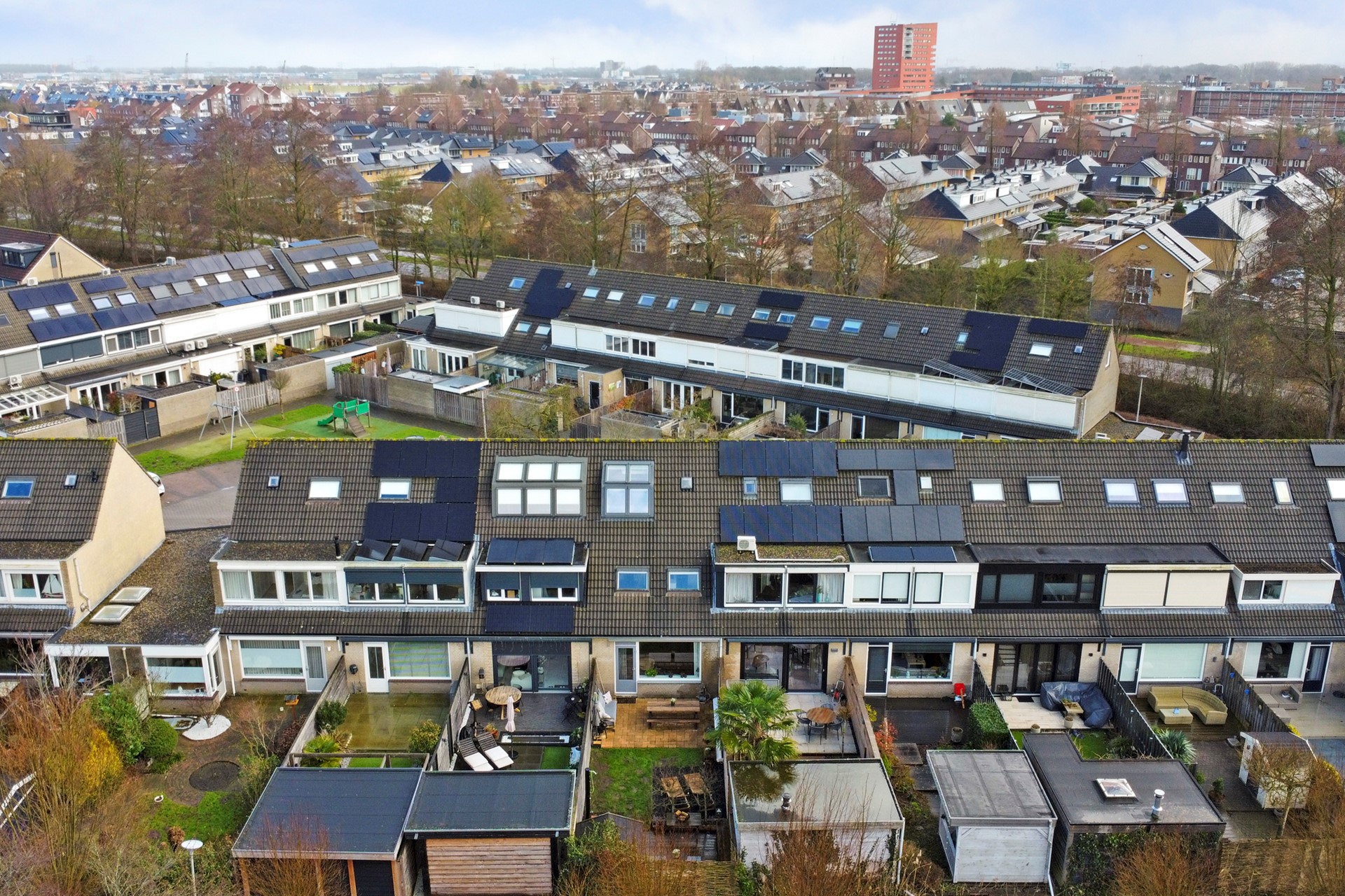 Stap binnen in dit ruime en moderne gezinshuis, waar comfort en gezelligheid hand in hand gaan. Deze tussenwoning uit 1992 biedt ca. 97 m² woonoppervlak, met vier slaapkamers, waaronder eentje met een prachtige dakserre, ideaal voor wie ’s ochtends van de zon wil wakker worden met een kop koffie en uitzicht over de buurt.
