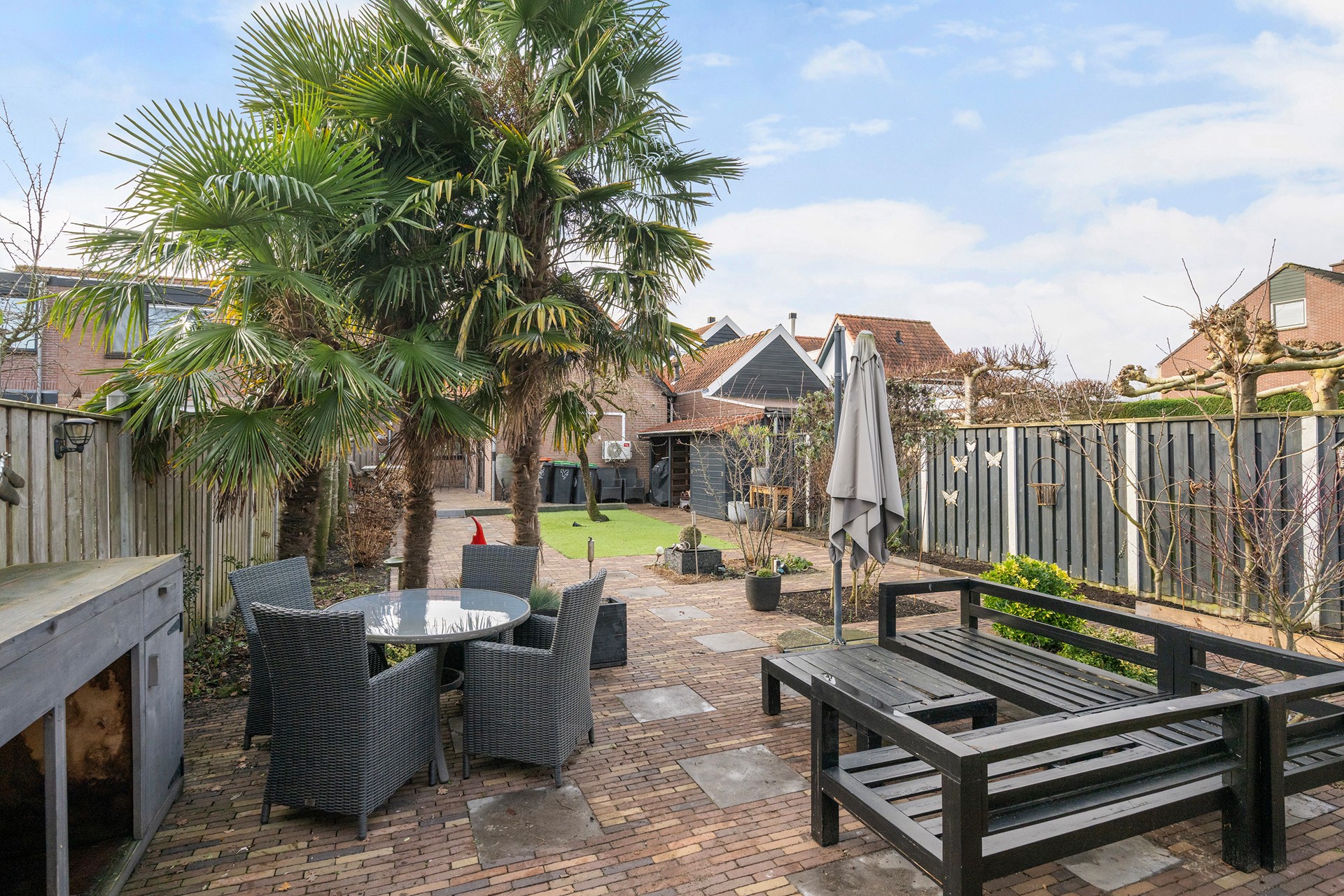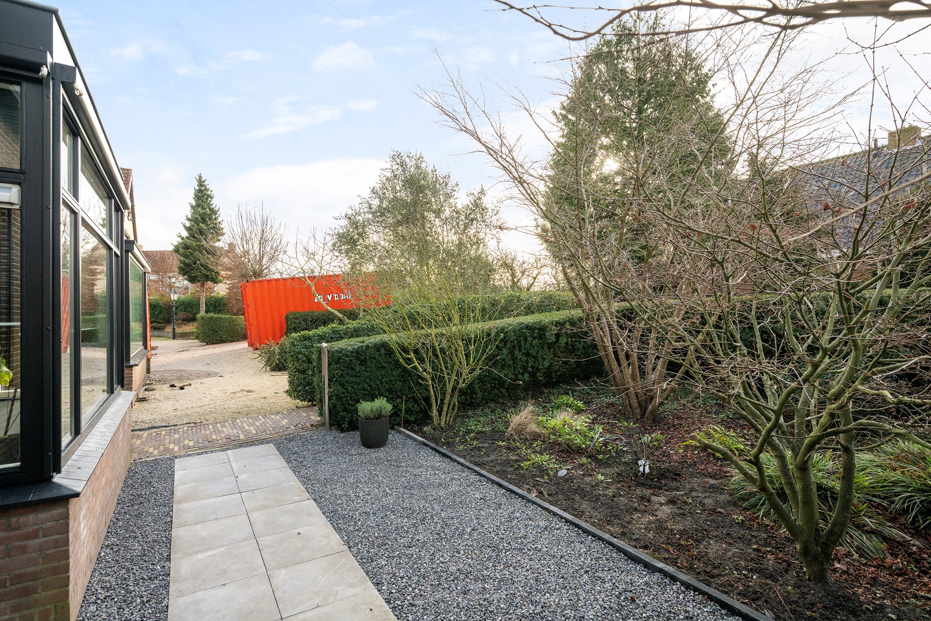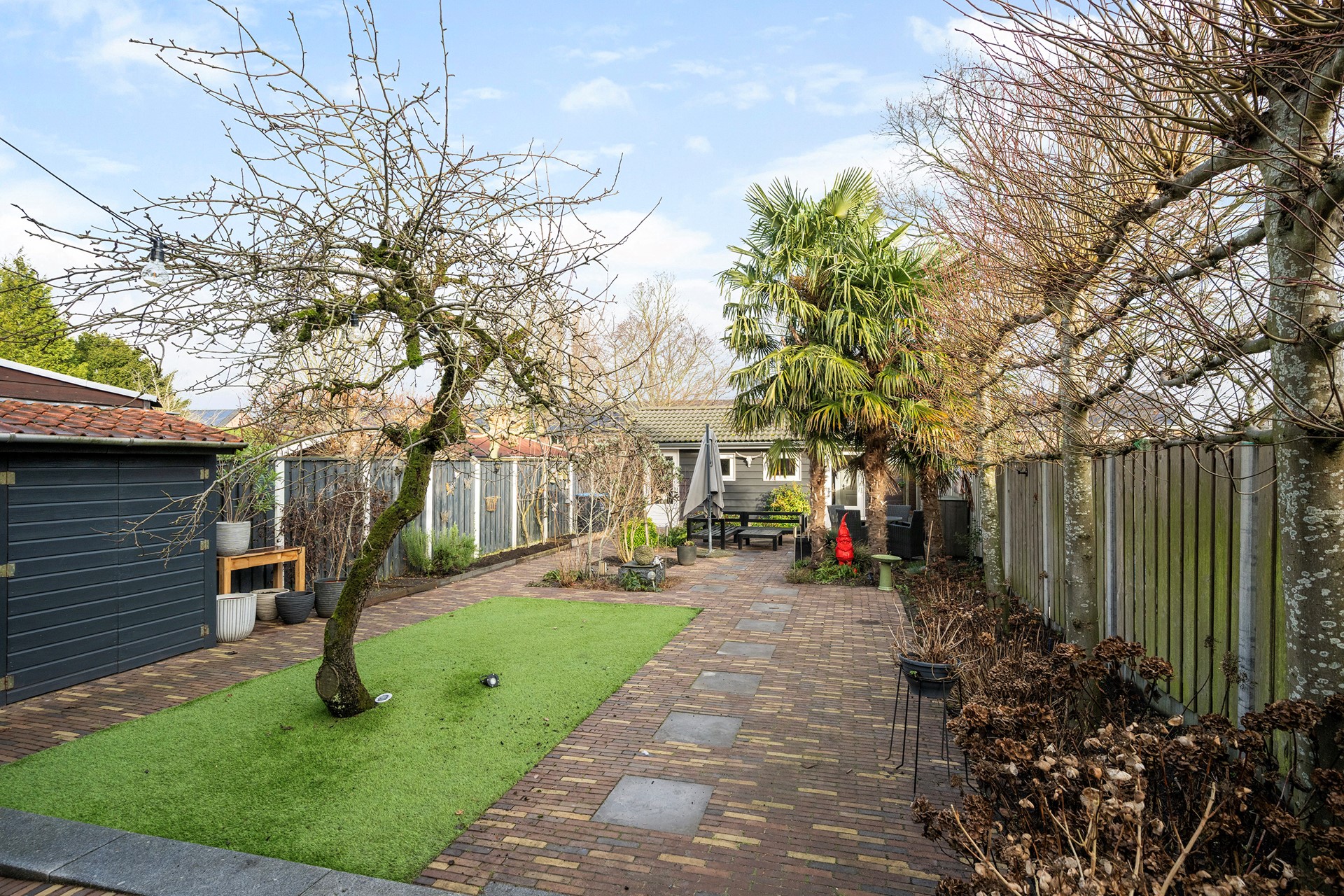 Een absolute eyecatcher is de riante, rondom gelegen tuin van ruim 190 m². De tuin is stijlvol aangelegd en biedt een oase van rust en groen, met zowel zonnige als schaduwrijke plekjes. Perfect om lange zomeravonden door te brengen, te tuinieren of te ontspannen in alle privacy.