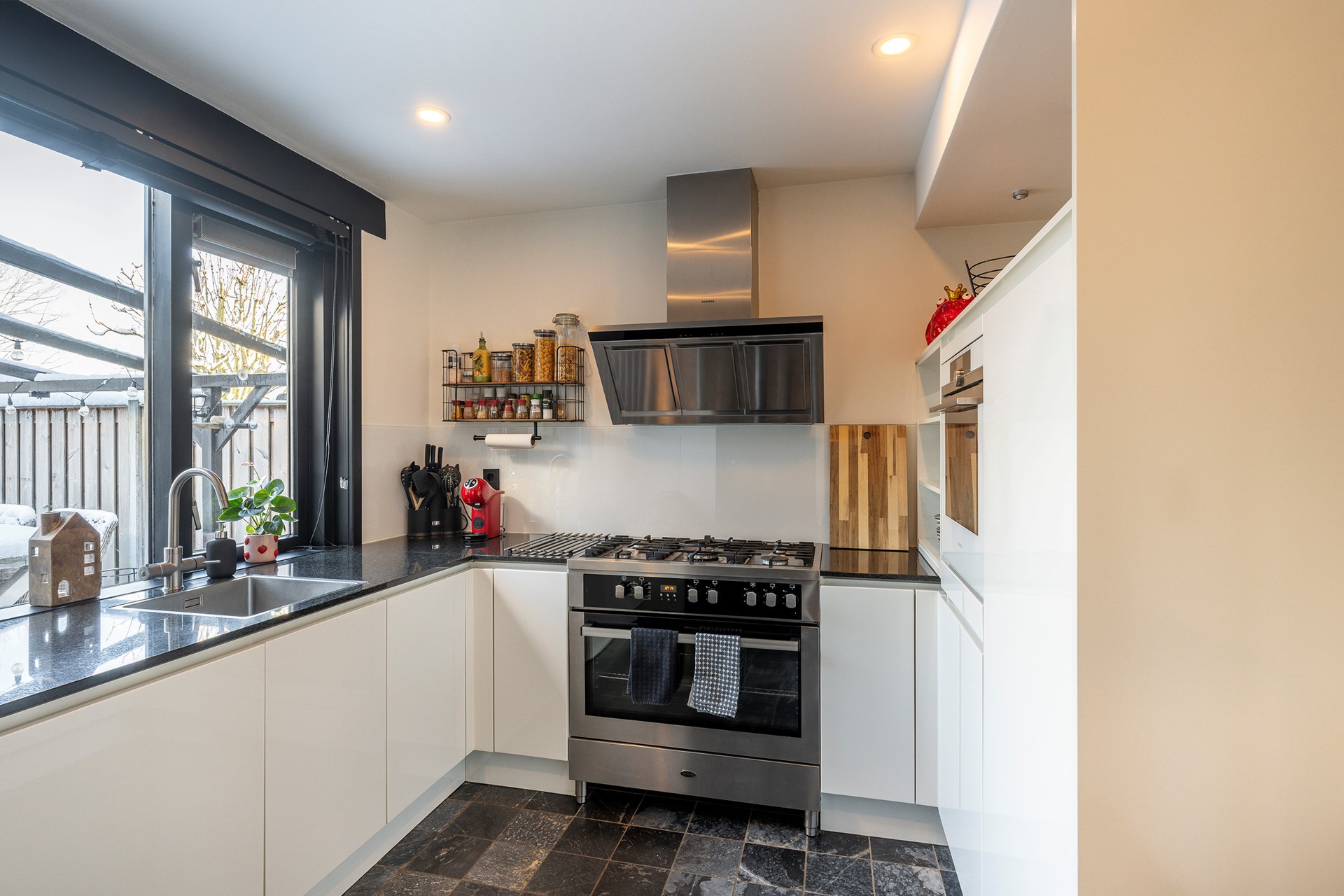 De keuken is praktisch en sfeervol ingericht en vormt een fijne plek voor dagelijks gebruik en is voorzien van diverse inbouwapparatuur, waardoor koken hier comfortabel en efficiënt verloopt. Daarnaast beschikt de keuken over een vaste kast waarin zich de cv-opstelling (Remeha Tzerra M 28c, bouwjaar 2012) en de mechanische afzuiging bevinden, netjes en uit het zicht. Dit zorgt voor een opgeruimde uitstraling en optimaal gebruik van de ruimte.