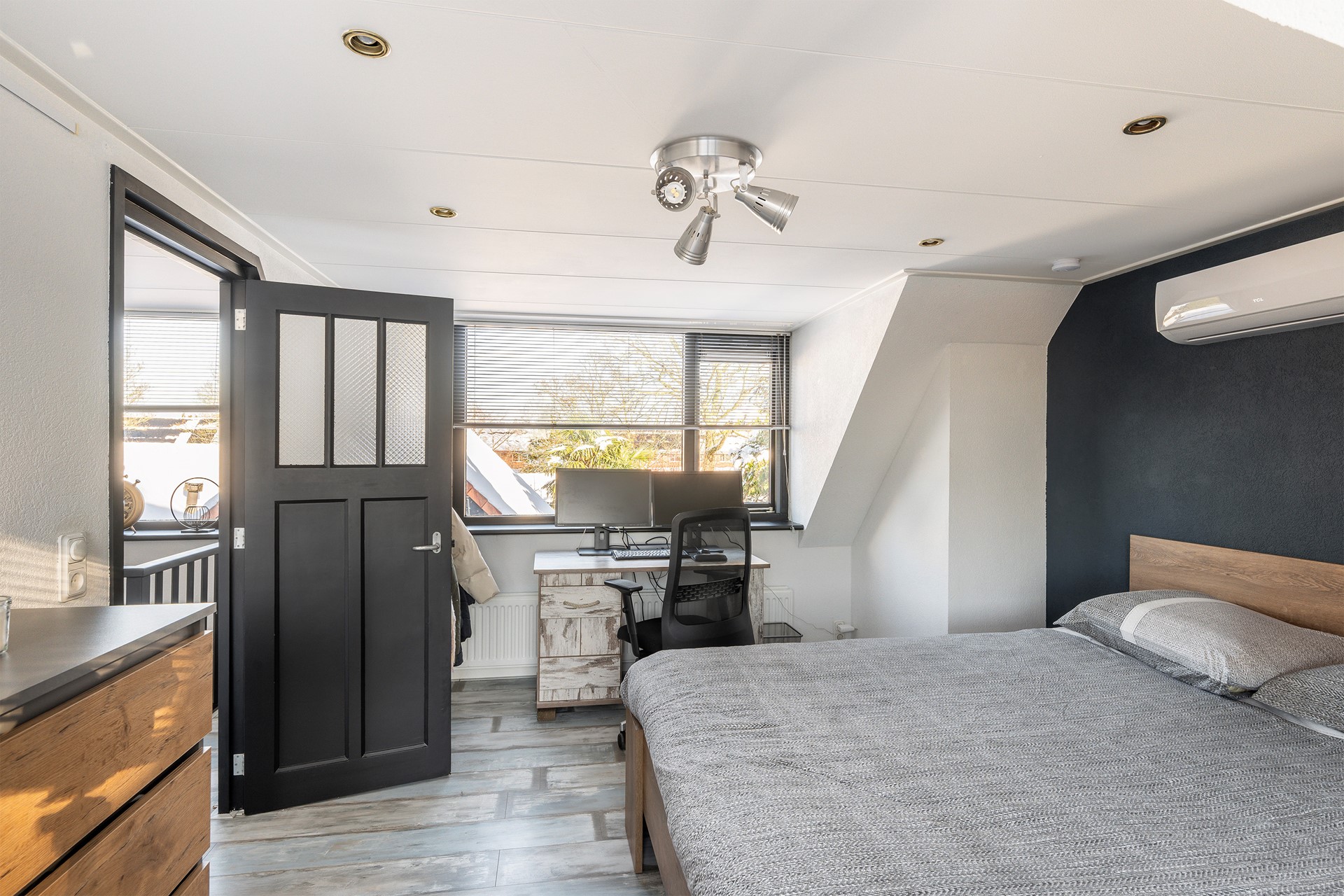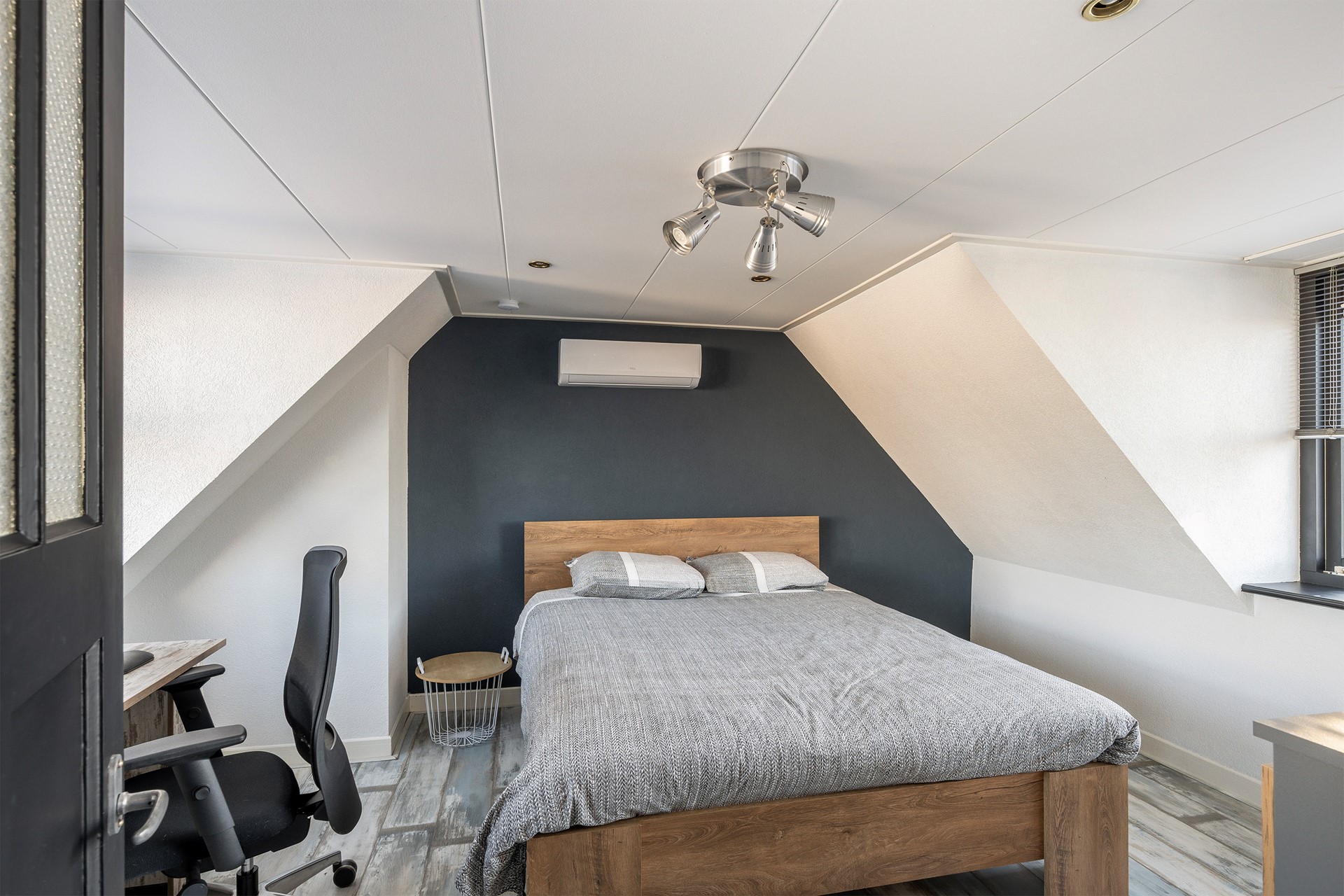Op de verdiepingen bevinden zich de overige twee slaapkamers, beide vergroot door middel van een dakkapel en van prettig formaat. Zo is er volop ruimte voor een gezin of voor gasten. Extra opslag biedt de aanwezige bergzolder.
