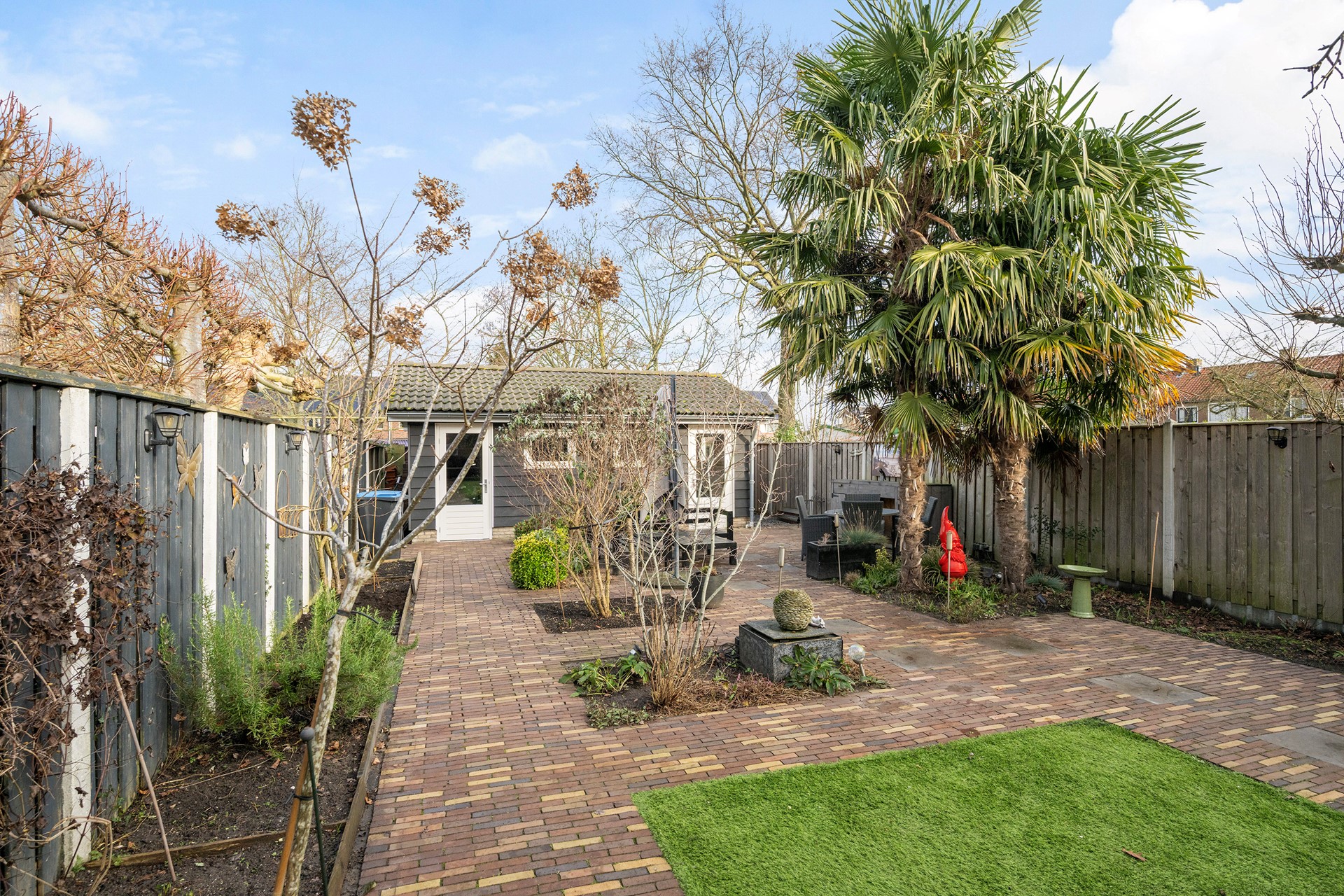 In de tuin bevindt zich een riante berging, die ook dienstdoet als thuiswerkplek én met een toilet – een rustige en praktische plek om ongestoord te werken of studeren.