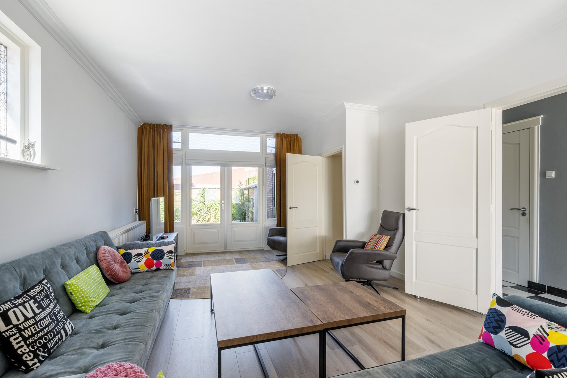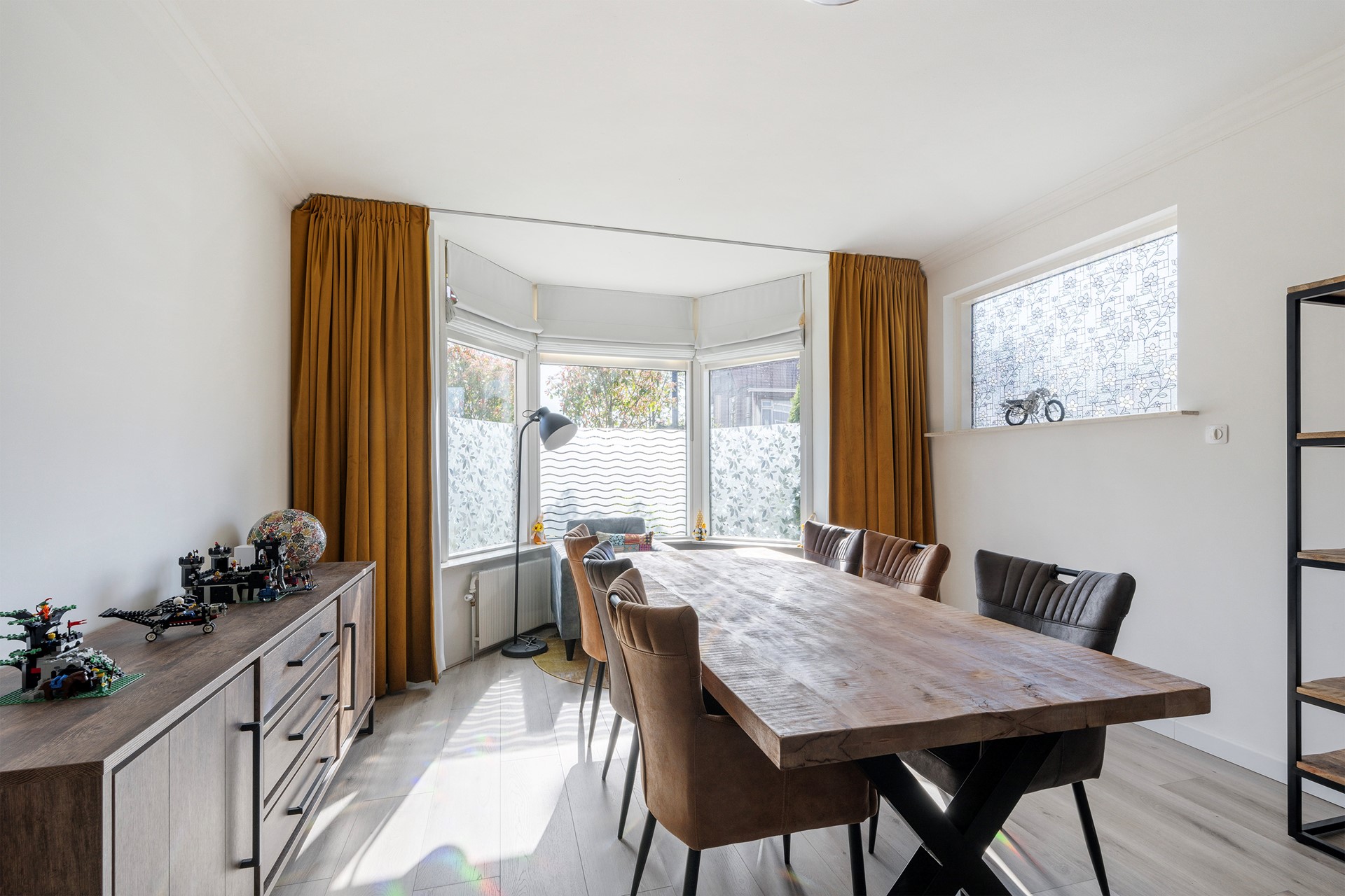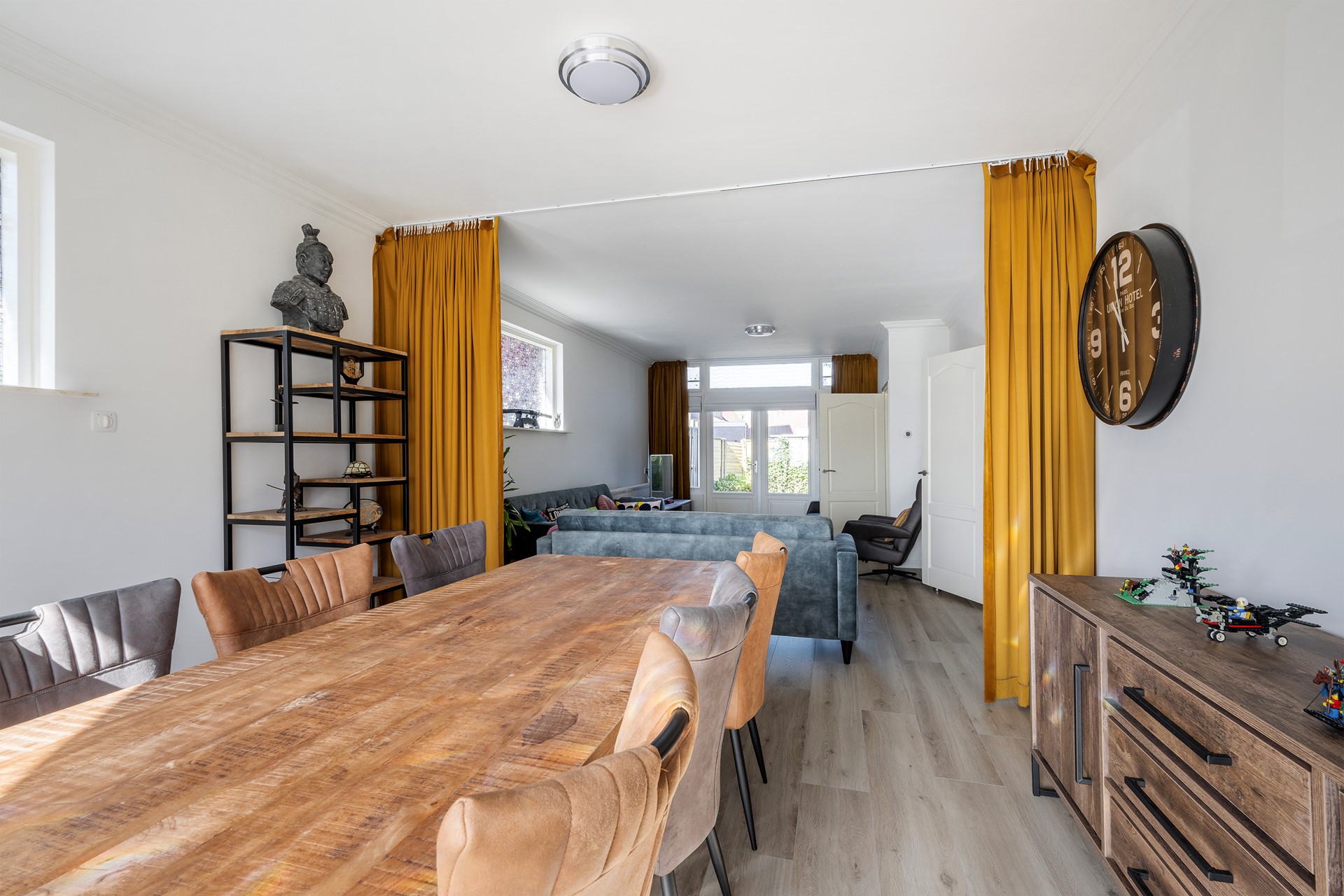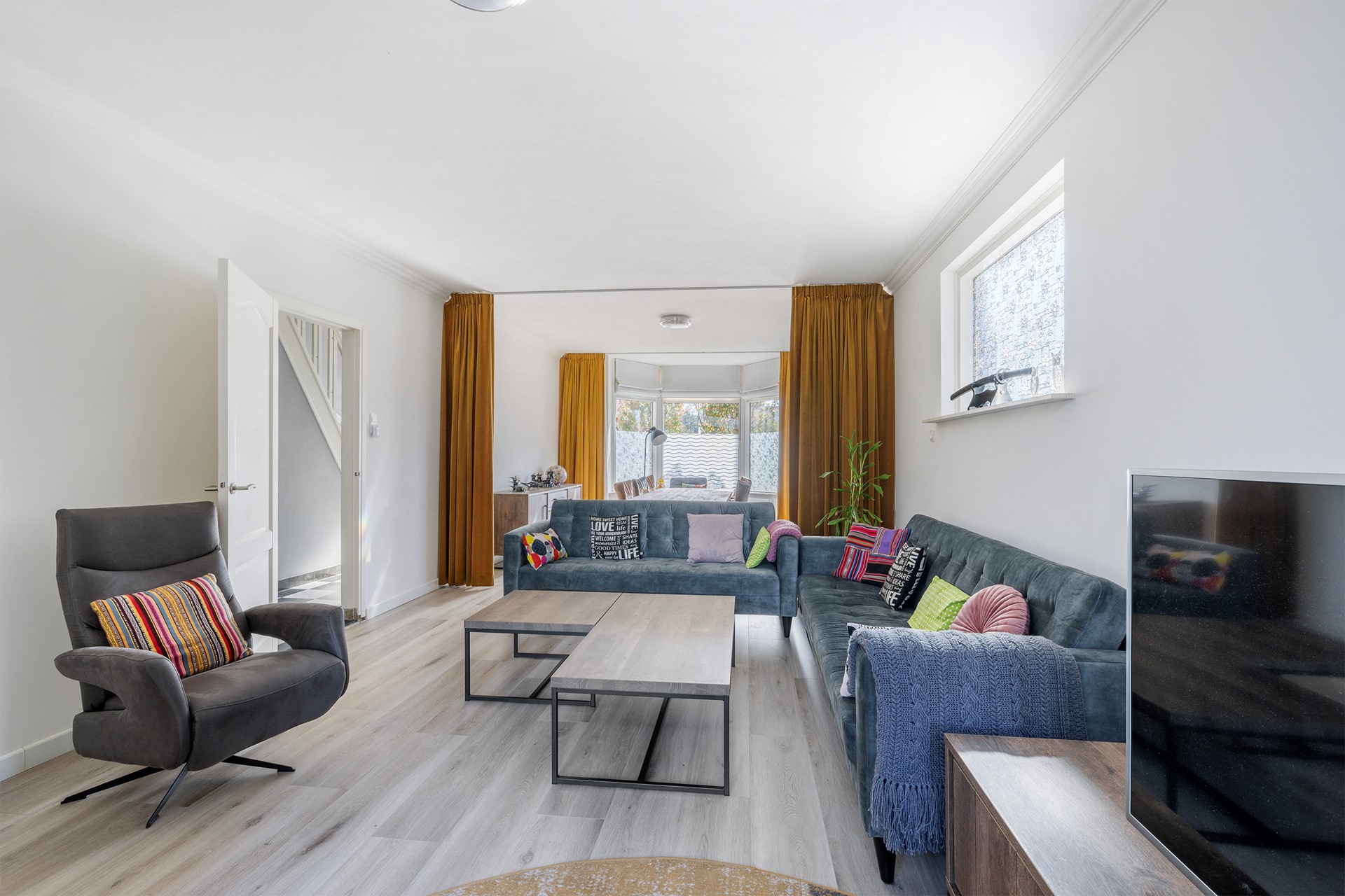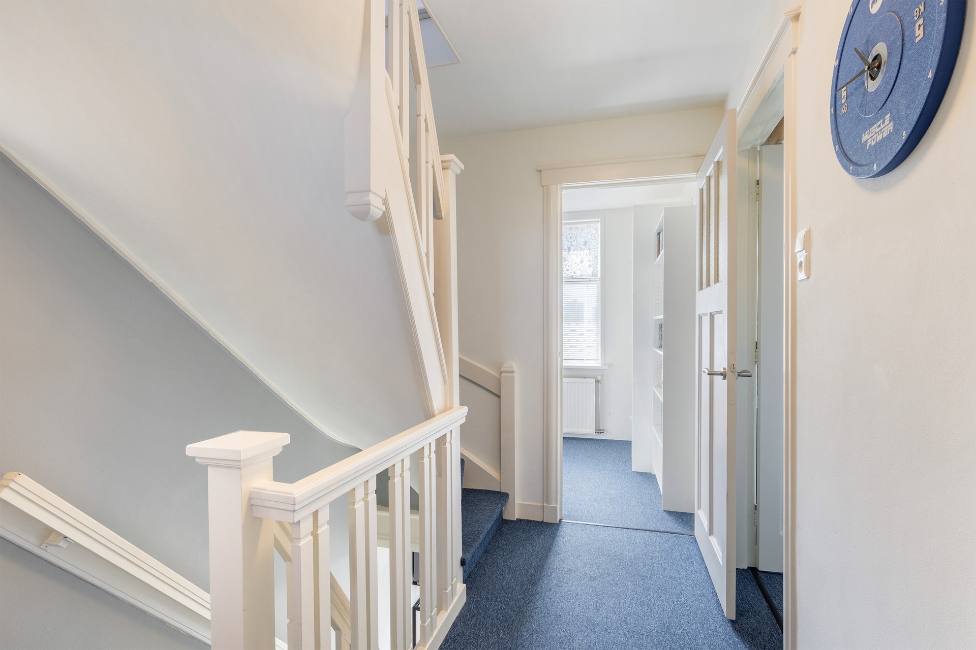 De klassieke entree met glas-in-loodramen maakt meteen indruk. De ruime hal biedt toegang tot de trapopgang, het moderne toilet en een praktische trapkast. De lichte woonkamer met fraaie zichtlijnen en openslaande deuren naar de tuin vormt het hart van het huis: een plek waar sfeer en comfort samenkomen.
