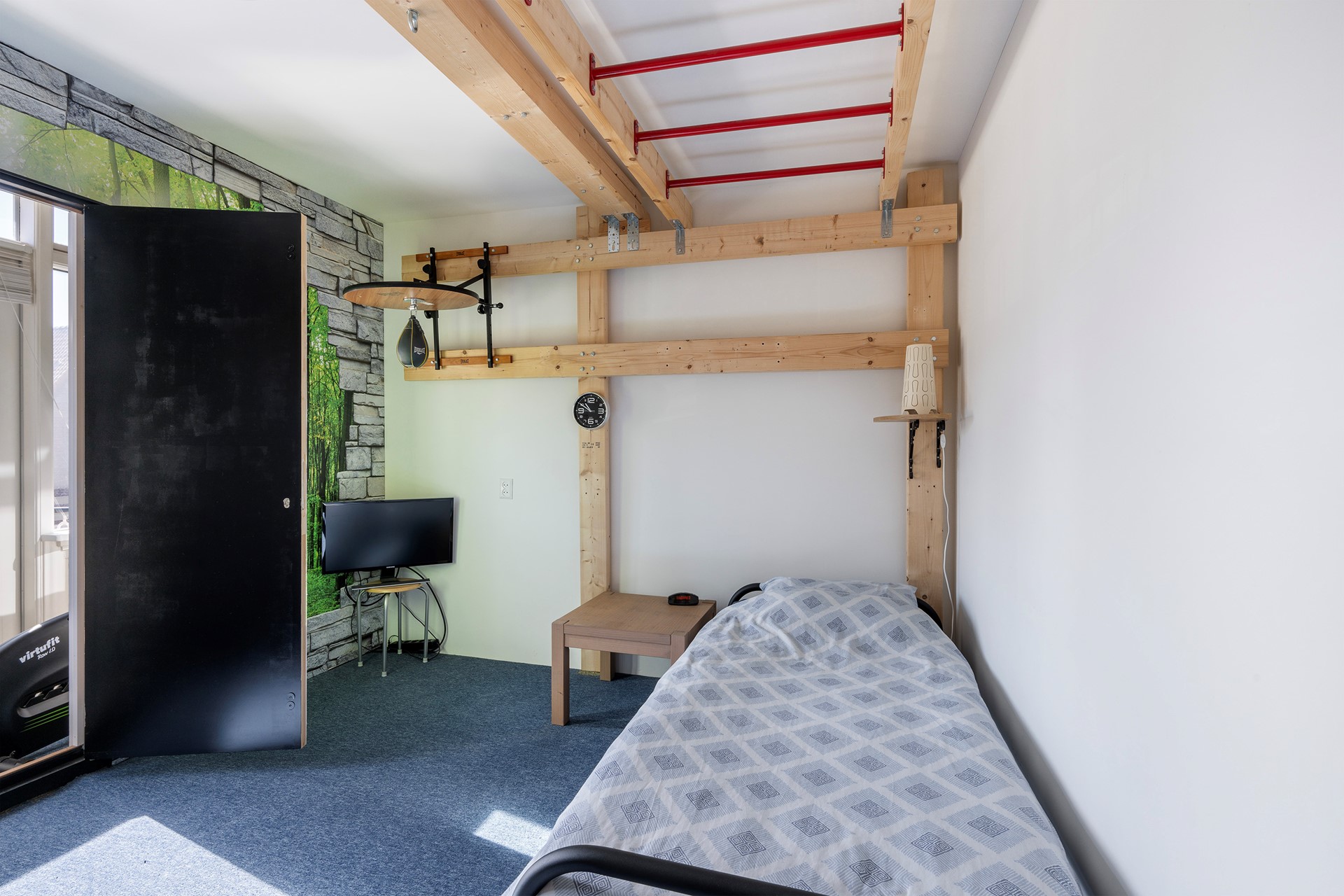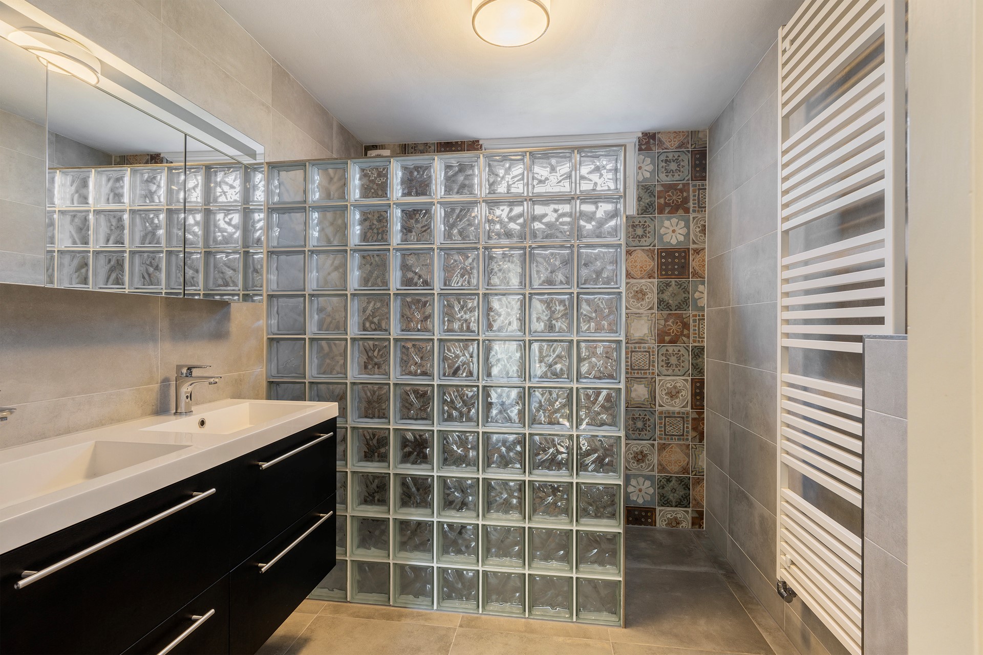 De overloop leidt naar drie slaapkamers, elk met hun eigen karakter. De slaapkamer aan de voorzijde beschikt over een balkon, de kamer aan de achterzijde over airconditioning en een rolluik. De badkamer is een echte blikvanger: stijlvol, modern en uitgerust met een inloopdouche, dubbele wastafel en tweede toilet. De derde kamer is perfect als thuiswerkplek of leesruimte.